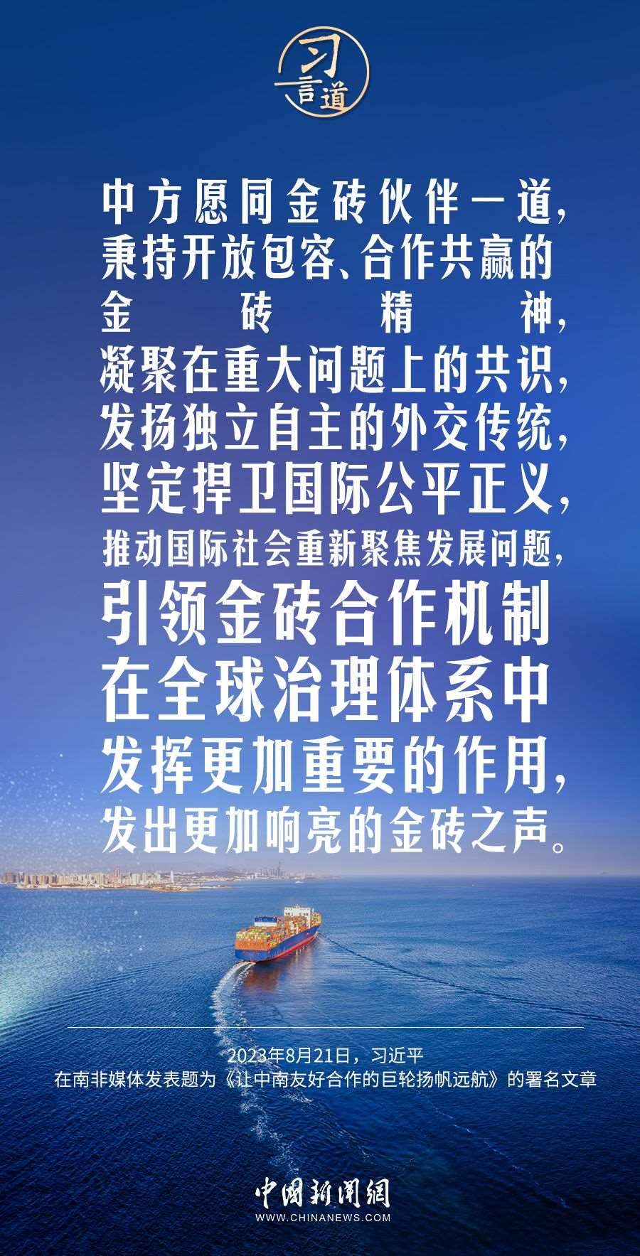 8月21日,在赴約翰內斯堡出席金磚國家領導人第十五次會晤并對南非進行國事訪問之際,國家主席習近平在南非《星報》、《開普時報》、《水星報》和南非獨立媒體網(wǎng)站發(fā)表題為《讓中南友好合作的巨輪揚帆遠航》的署名文章。習近平指出——