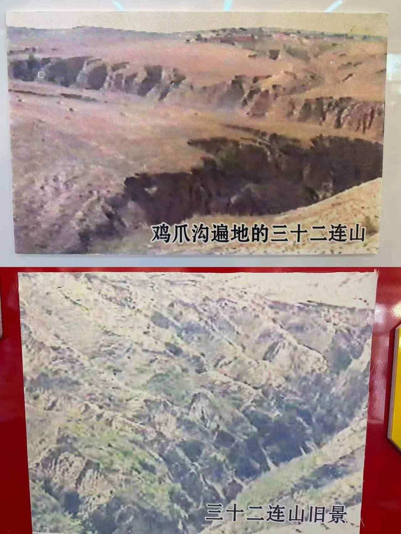 曾任三十二連山小流域綜合治理工程總指揮的韓旭東回憶說,這里曾經黃沙漫天、洪水泛濫,刮起風沙,白天能見度極低,一場風沙能把剛長起來的苗蓋死,是典型的“禿山光嶺干河套,牛羊啃草滿山繞”。
