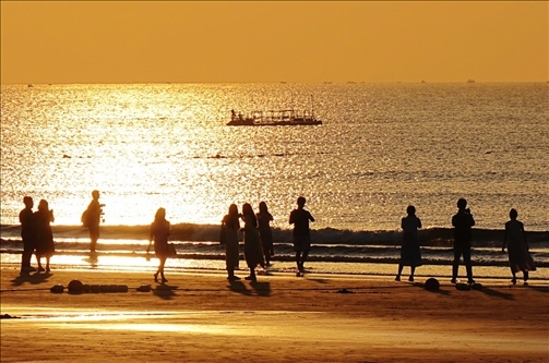 8月24日,青島秋高氣爽,眾多市民游客來(lái)到西海岸新區(qū)金沙灘,觀看海上日出美景。