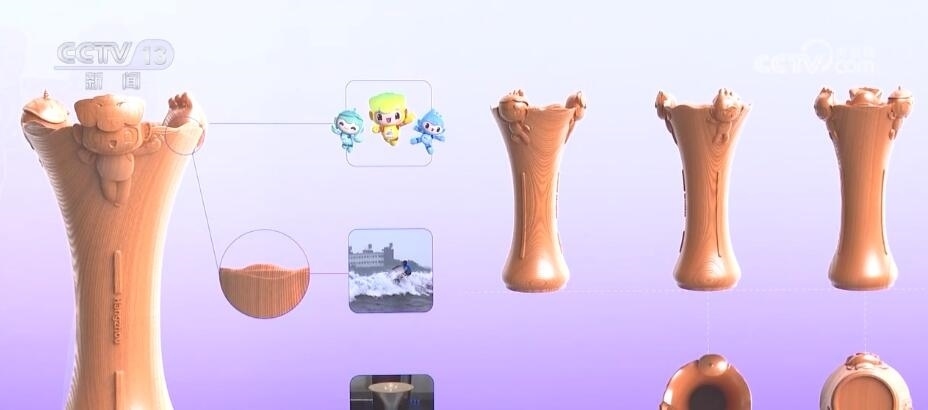 頒獎(jiǎng)托盤設(shè)計(jì)靈感則來源于微風(fēng)中波動的西湖水面,結(jié)合本屆亞運(yùn)會核心圖形“潤澤”中的飄逸絲帶意向,整體給人流動之感。