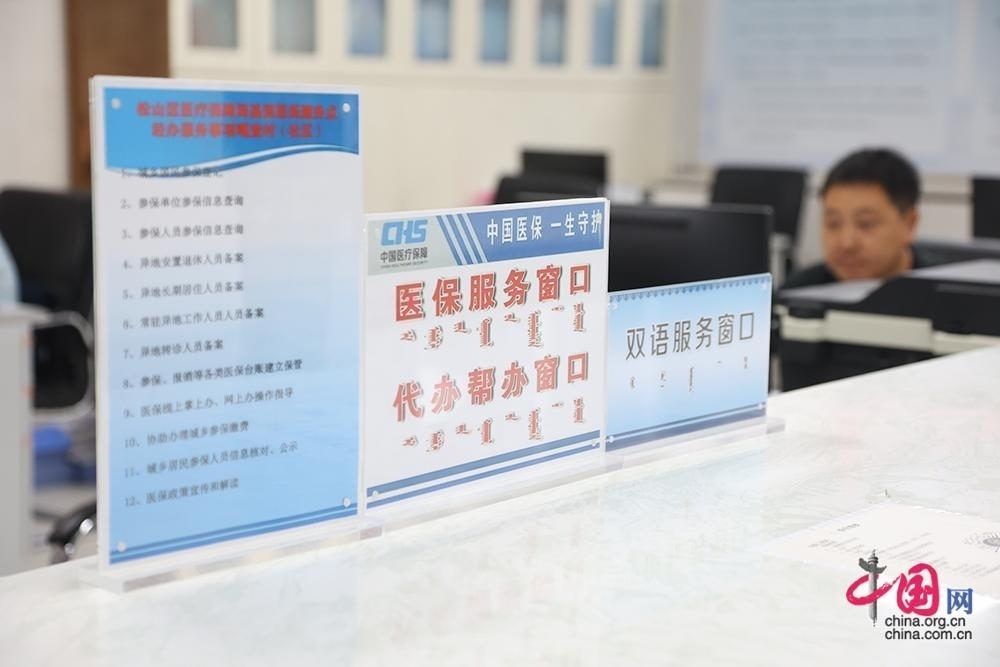 臨潢家園社區(qū)服務(wù)于轄區(qū)各民族居民,在服務(wù)中心內(nèi)搭建了公共服務(wù)平臺(tái),竭力促進(jìn)民族團(tuán)結(jié)進(jìn)步,維護(hù)社區(qū)的和諧穩(wěn)定。圖為臨潢家園社區(qū)便民服務(wù)中心內(nèi)的雙語(yǔ)服務(wù)窗口。中國(guó)網(wǎng)記者 倫曉璇 攝