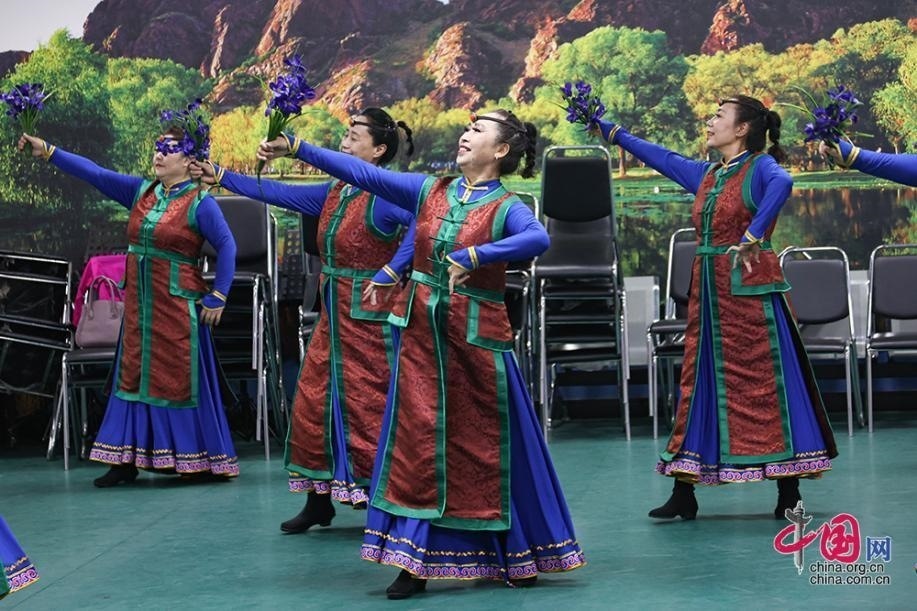 在臨潢家園社區(qū)便民服務(wù)中心內(nèi),由社區(qū)里各民族居民組成的烏蘭牧騎小分隊(duì)正在排練廳內(nèi)練習(xí)舞蹈。中國(guó)網(wǎng)記者 倫曉璇 攝