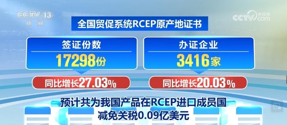 RCEP原產(chǎn)地證書簽證份數(shù)同比增長27.03%