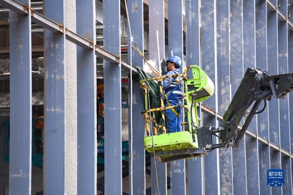8月30日,在河套深港科技創(chuàng)新合作區(qū)首批重點項目河套壹號(原名:深港科創(chuàng)綜合服務中心)建設現(xiàn)場,中建深裝的工人進行幕墻鋼龍骨焊接作業(yè)。新華社記者 梁旭 攝