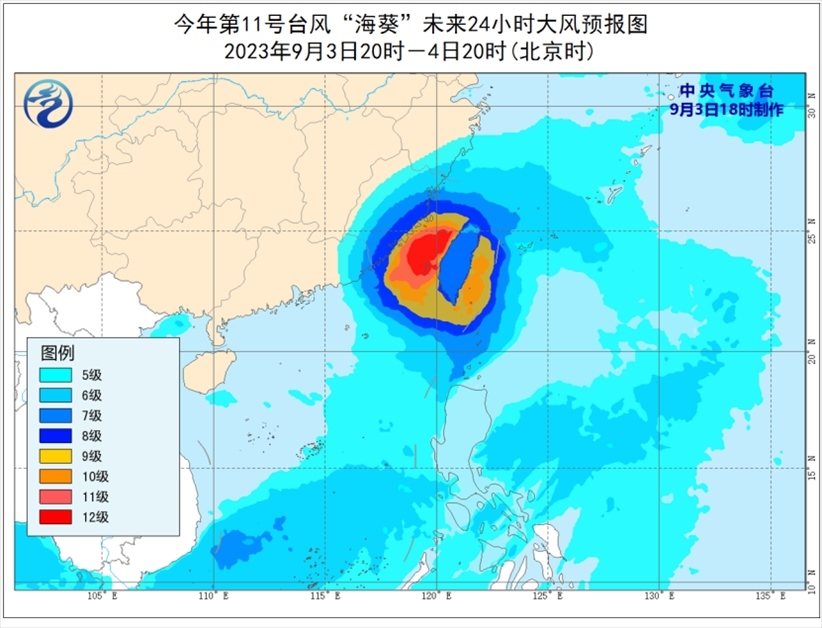 大風(fēng)預(yù)報(bào):9月3日20時(shí)至4日20時(shí),巴士海峽、臺(tái)灣海峽、臺(tái)灣以東洋面、東海南部及釣魚(yú)島附近海域、南海東北部以及浙江南部沿海、福建沿海、廣東東部偏東地區(qū)沿海、臺(tái)灣島及沿海將有6-8級(jí)、陣風(fēng)9-10級(jí)大風(fēng),部分海域或地區(qū)的風(fēng)力有9-12級(jí),陣風(fēng)13-14級(jí),“??敝行慕?jīng)過(guò)的附近海面或地區(qū)的風(fēng)力有13-14級(jí),陣風(fēng)15級(jí)。