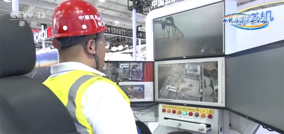服貿(mào)會(huì)工作人員 趙晨曦:我現(xiàn)在控制的塔吊位于湖北省武漢市,距離展會(huì)現(xiàn)場(chǎng)1200公里?,F(xiàn)在我們來(lái)旋轉(zhuǎn)大臂,我們可以看到運(yùn)行過(guò)程非常流暢。接下來(lái)我們來(lái)落吊鉤,畫面也是幾乎沒有延遲。