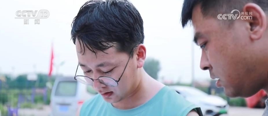記者見到張義超時,他正忙著幫鄉(xiāng)親們排澇。