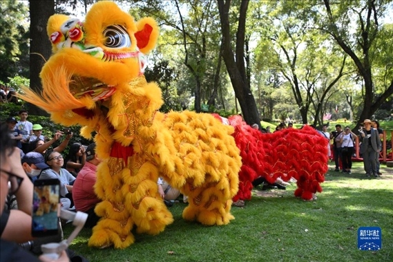 日前,“中墨共享一輪明月”中秋文化活動(dòng)在墨西哥城舉辦?;顒?dòng)中,來自中墨兩國的數(shù)十組舞獅齊聚共舞,與當(dāng)?shù)孛癖姎g慶中秋佳節(jié)。