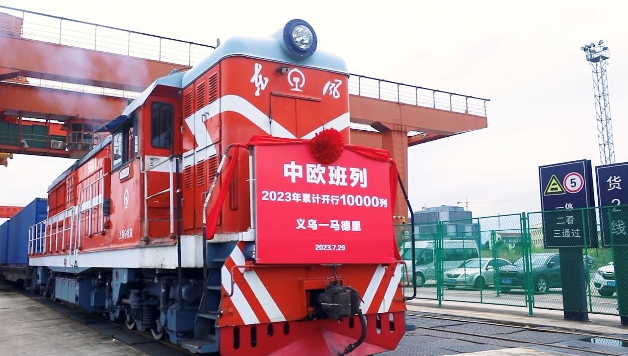 此次元首會面僅53天后,首列“義新歐”中歐班列從義烏西站鳴笛駛出,分處亞歐大陸兩端的中國義烏和西班牙馬德里,第一次實(shí)現(xiàn)了鐵路直通,原本近兩個月的貨物海運(yùn)時間縮短至21天。