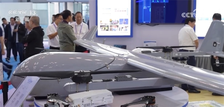 ?????? 在展會的未來產(chǎn)業(yè)館,“上天入海”的高科技新產(chǎn)品讓眾多觀眾駐足體驗?,F(xiàn)在您看到的就是一架垂直起降式的衛(wèi)星通信無人機,它搭載了國產(chǎn)的亞太衛(wèi)星技術,目前已經(jīng)被廣泛應用于應急救援、公安消防、水利農(nóng)林等各個領域,這個機器的翼展只有六米,可以適應各種地形的起降。?
