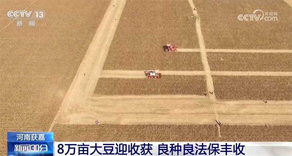 金秋十月,河南新鄉(xiāng)市獲嘉縣8.25萬畝大豆迎來了收獲期,大豆田里收割機(jī)往來穿梭、有序作業(yè)。近年來,當(dāng)?shù)剞r(nóng)業(yè)專家探索出的一套“良種+良法”相配套、“農(nóng)機(jī)+農(nóng)藝”相結(jié)合的高產(chǎn)優(yōu)質(zhì)栽培管理技術(shù),為大豆高產(chǎn)夯實(shí)了技術(shù)保障。