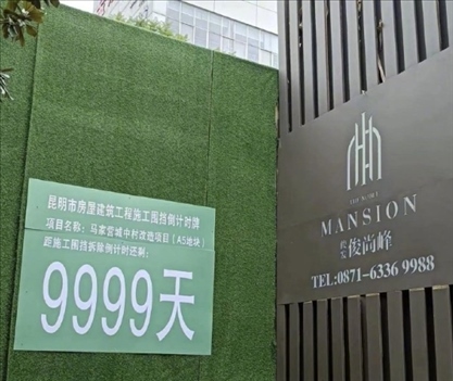 ·昆明一施工圍擋上張貼“拆除倒計(jì)時9999天”,官方回應(yīng):系工作失誤,已及時撤下。