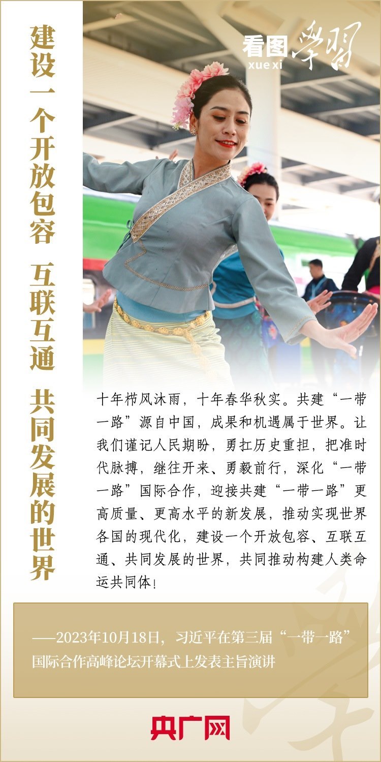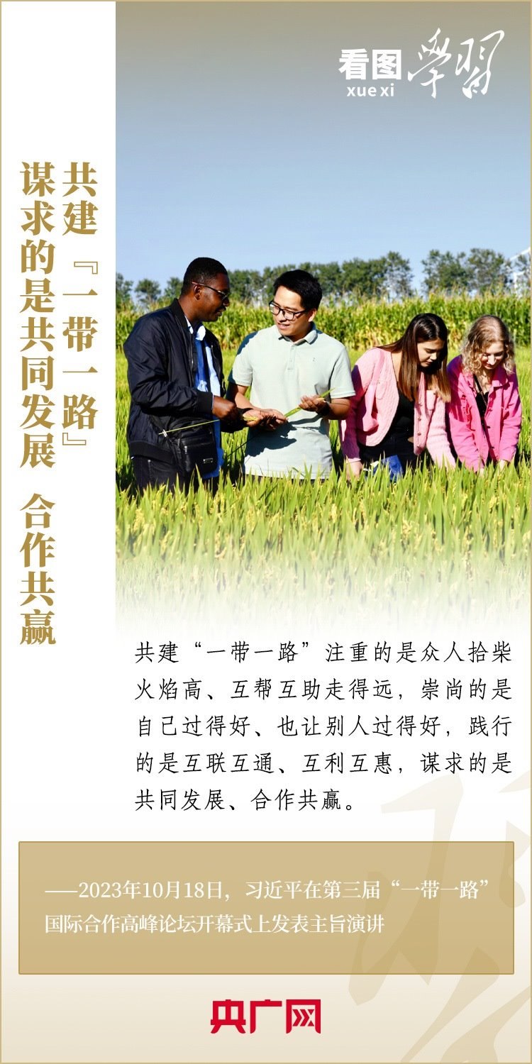 10月18日,習(xí)近平主席出席第三屆“一帶一路”國際合作高峰論壇開幕式并發(fā)表主旨演講,深刻總結(jié)共建“一帶一路”倡議提出十年來取得的發(fā)展成果和經(jīng)驗(yàn),就中國支持高質(zhì)量共建“一帶一路”提出具體行動(dòng),強(qiáng)調(diào)要迎接共建“一帶一路”更高質(zhì)量、更高水平的新發(fā)展,推動(dòng)實(shí)現(xiàn)世界各國的現(xiàn)代化,建設(shè)一個(gè)開放包容、互聯(lián)互通、共同發(fā)展的世界,共同推動(dòng)構(gòu)建人類命運(yùn)共同體!一起來學(xué)習(xí)!