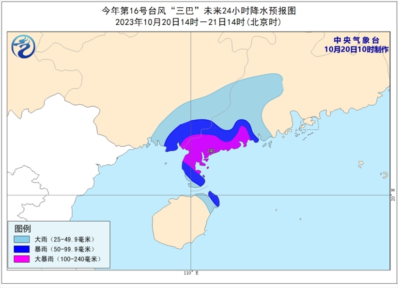 中央氣象臺(tái)10月20日10時(shí)繼續(xù)發(fā)布臺(tái)風(fēng)藍(lán)色預(yù)警