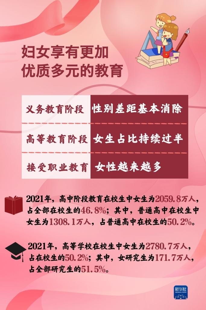 黨的十八大以來,黨對婦女兒童工作的領(lǐng)導(dǎo)全面加強(qiáng),婦女參與經(jīng)濟(jì)發(fā)展的舞臺(tái)更為廣闊,參與決策和管理更加廣泛深入,享有更加優(yōu)質(zhì)更加多元的教育……新時(shí)代我國婦女事業(yè)取得了歷史性成就,發(fā)生歷史性變革。