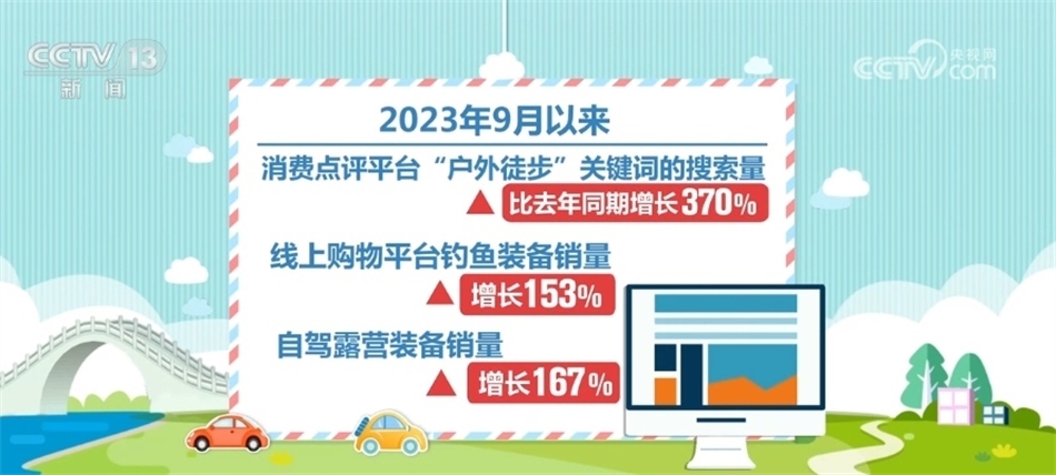 據(jù)統(tǒng)計(jì),今年九月以來,消費(fèi)點(diǎn)評平臺“戶外徒步”關(guān)鍵詞的搜索量比去年同期增長了370%,線上購物平臺釣魚裝備銷量增長153%,自駕露營裝備銷量增長了167%。隨著“戶外+”的新模式、新業(yè)態(tài)大量涌現(xiàn),消費(fèi)產(chǎn)品也日趨多樣化,戶外運(yùn)動對體育產(chǎn)業(yè)的帶動作用更加凸顯。