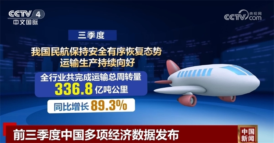 三季度,中國民航保持安全有序恢復(fù)態(tài)勢,運(yùn)輸生產(chǎn)持續(xù)向好,全行業(yè)共完成運(yùn)輸總周轉(zhuǎn)量336.8億噸公里,同比增長89.3%;客運(yùn)市場需求旺盛,全行業(yè)共完成旅客運(yùn)輸量1.8億人次,同比增長108.3%,行業(yè)客運(yùn)規(guī)模創(chuàng)季度歷史新高。