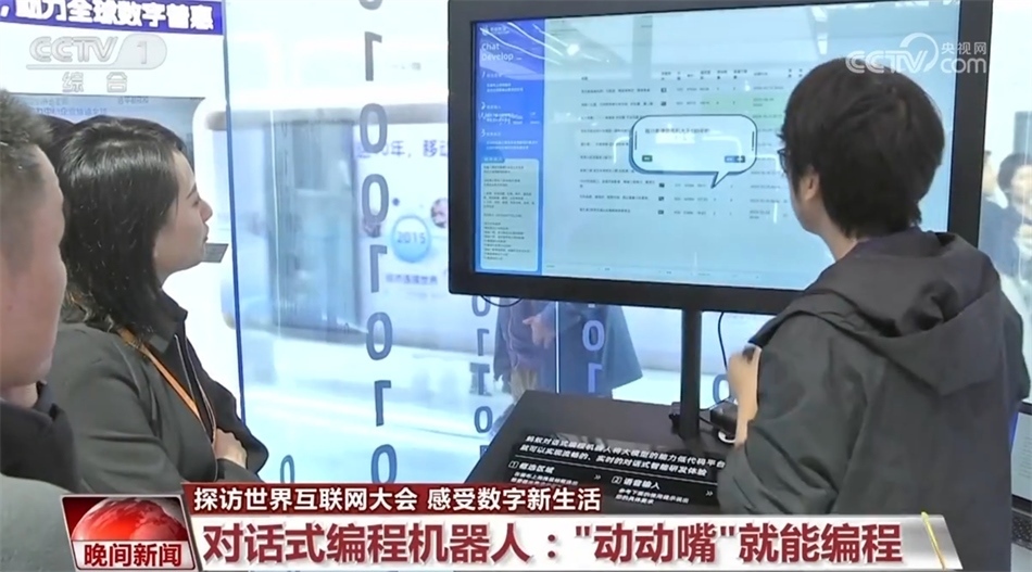 在此次互聯(lián)網(wǎng)之光博覽會的數(shù)字技術(shù)展區(qū),有數(shù)十家科技企業(yè)都展出了人工智能大語言模型應(yīng)用產(chǎn)品,覆蓋了日常生活、生產(chǎn)制造、安全防護(hù)等多個行業(yè)領(lǐng)域。這是一款對話式編程機(jī)器人,通過基于人工智能大模型的應(yīng)用平臺,非專業(yè)人士不用學(xué)寫代碼,只要“動動嘴”就能編寫相關(guān)應(yīng)用程序,并通過指令來完成多種日常看似繁瑣的操作。