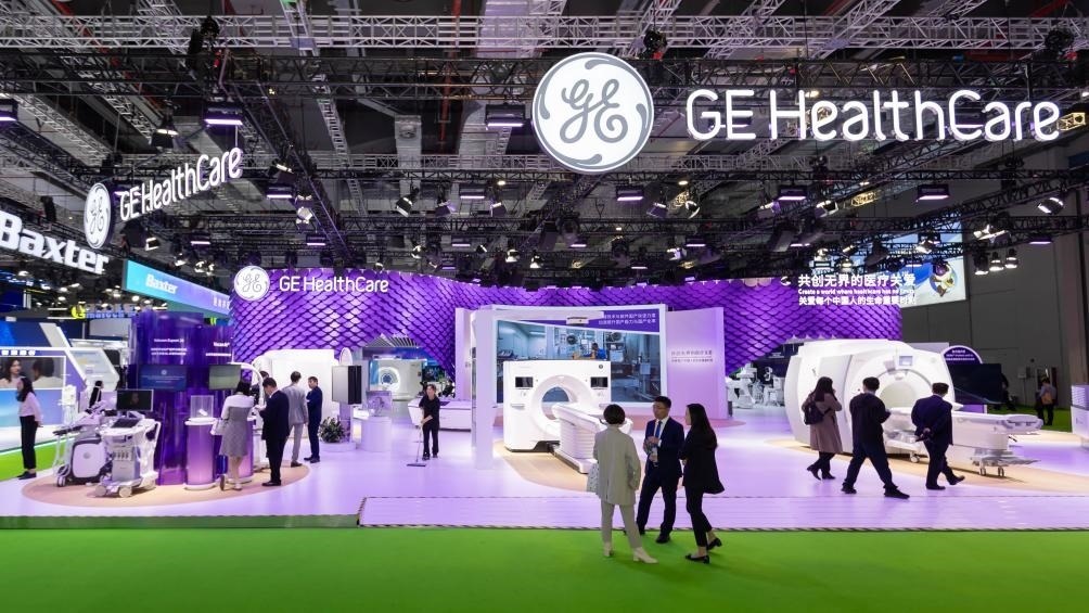 11月8日在第六屆進(jìn)博會(huì)醫(yī)療器械及醫(yī)藥保健展區(qū)拍攝的GE醫(yī)療展位。