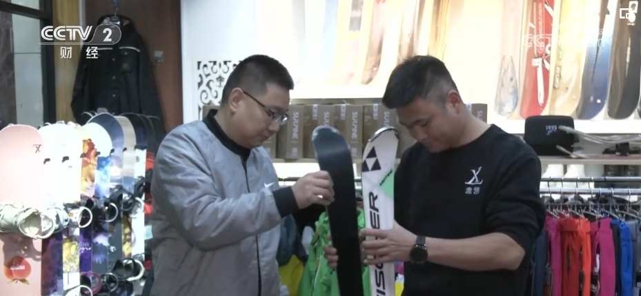 記者在河北崇禮多家雪具雪服的裝備店看到,不少滑雪愛好者正在購買新裝備。