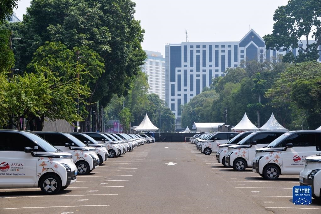 這是9月6日在印度尼西亞雅加達(dá)第43屆東盟峰會會場外拍攝的五菱新能源車Air ev。新華社記者 徐欽 攝