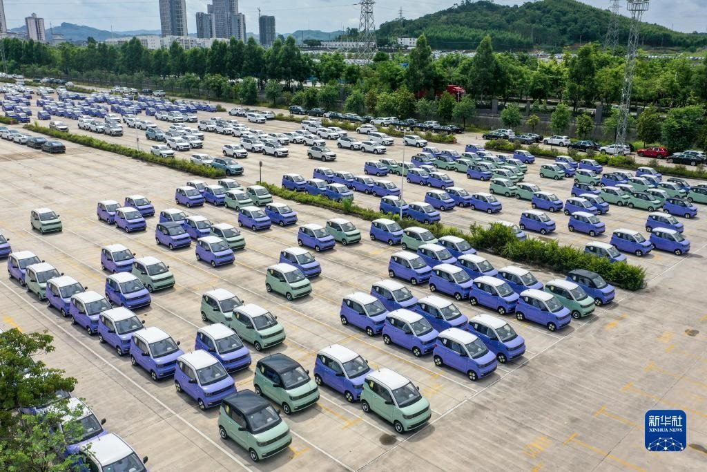 這是位于廣西柳州市的雒容汽車物流基地,一些出口的新能源汽車從這里裝車運(yùn)往各大出海港口(7月19日攝,無人機(jī)照片)。新華社記者 曹祎銘 攝