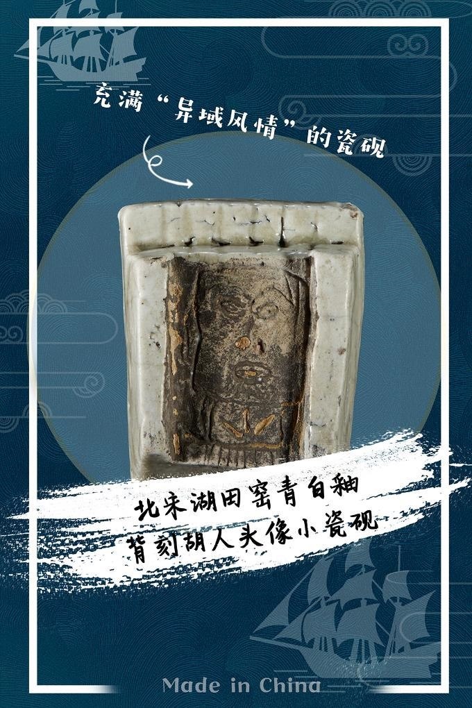北宋湖田窯青白釉背刻胡人頭像小瓷硯