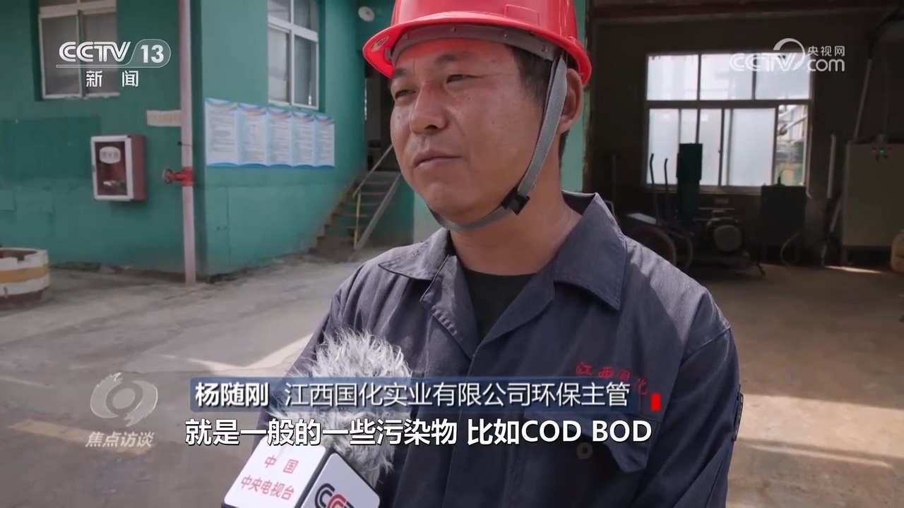 江西國化實(shí)業(yè)有限公司環(huán)保主管楊隨剛:“目前檢測就是一般的一些污染物,比如COD、BOD,還有pH有沒有影響,氨氮和總磷這些因子。”