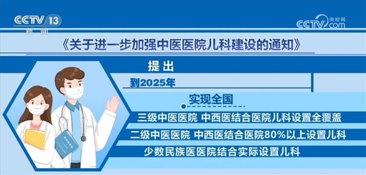 ?????? 《通知》提出,中醫(yī)醫(yī)院應(yīng)根據(jù)當(dāng)?shù)厝丝谝?guī)模及兒童中醫(yī)藥服務(wù)需求,設(shè)置兒科門診、病房床位,配備兒科醫(yī)師。二級(jí)公立中醫(yī)醫(yī)院應(yīng)普遍開設(shè)兒科門診,三級(jí)公立中醫(yī)醫(yī)院應(yīng)開設(shè)兒科病房,有條件的三級(jí)中醫(yī)醫(yī)院可設(shè)置兒科急診,國(guó)家中醫(yī)兒科優(yōu)勢(shì)??茟?yīng)設(shè)置兒童重癥監(jiān)護(hù)室。到2025年,實(shí)現(xiàn)全國(guó)三級(jí)中醫(yī)醫(yī)院、中西醫(yī)結(jié)合醫(yī)院兒科設(shè)置全覆蓋,二級(jí)中醫(yī)醫(yī)院、中西醫(yī)結(jié)合醫(yī)院80%以上設(shè)置兒科,少數(shù)民族醫(yī)醫(yī)院結(jié)合實(shí)際設(shè)置兒科。