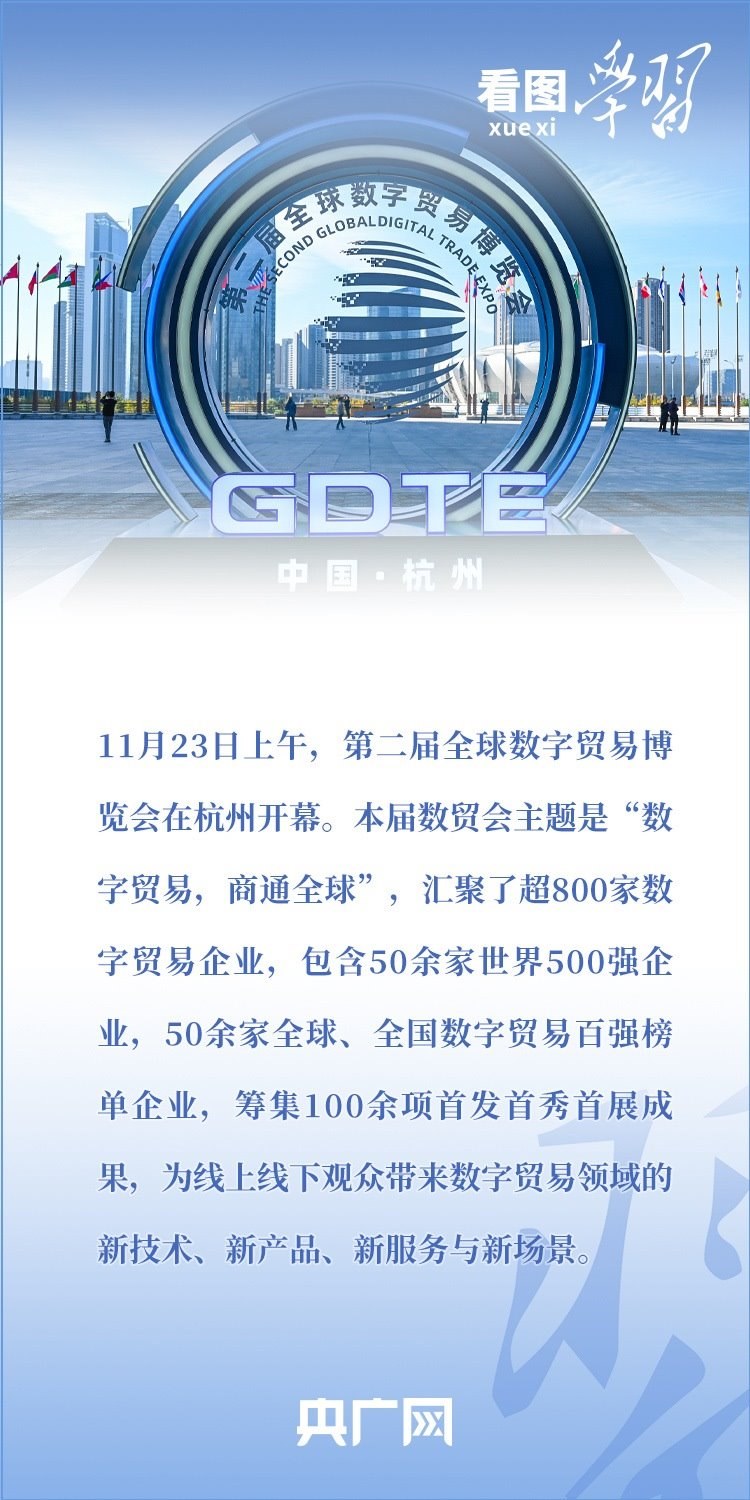 11月23日,國家主席習(xí)近平向第二屆全球數(shù)字貿(mào)易博覽會致賀信,希望各方充分利用全球數(shù)字貿(mào)易博覽會平臺,共商合作、共促發(fā)展、共享成果,攜手將數(shù)字貿(mào)易打造成為共同發(fā)展的新引擎,為世界經(jīng)濟(jì)增長注入新動能。