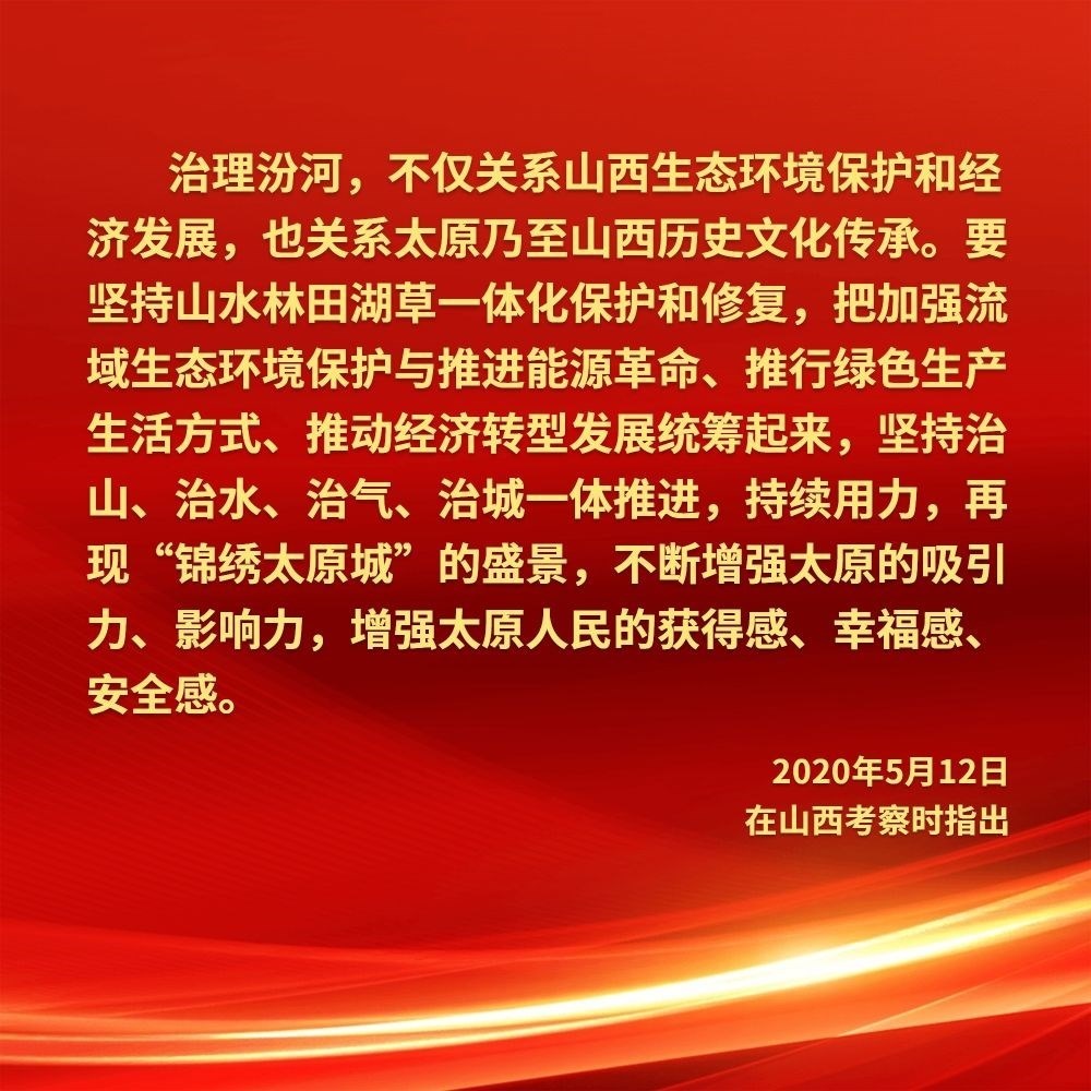 2020年5月12日,習(xí)近平在汾河太原城區(qū)晉陽橋段考察汾河水治理及沿岸生態(tài)保護(hù)、城市環(huán)境建設(shè)等情況。