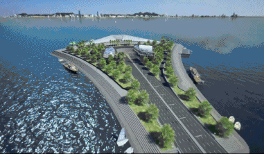 西人工島面積約13.7萬平方米、相當(dāng)于19個(gè)足球場,從空中俯瞰,就像一只鯤鵬,展翅在伶仃洋海面上。這里也是深中通道橋隧轉(zhuǎn)換的關(guān)鍵構(gòu)造,從這里開始,深中通道開始了全長6845米的海底隧道部分,未來汽車將從這里駛向海平面之下,最深的地方將會(huì)在海平面之下39米的沉管隧道中行駛。