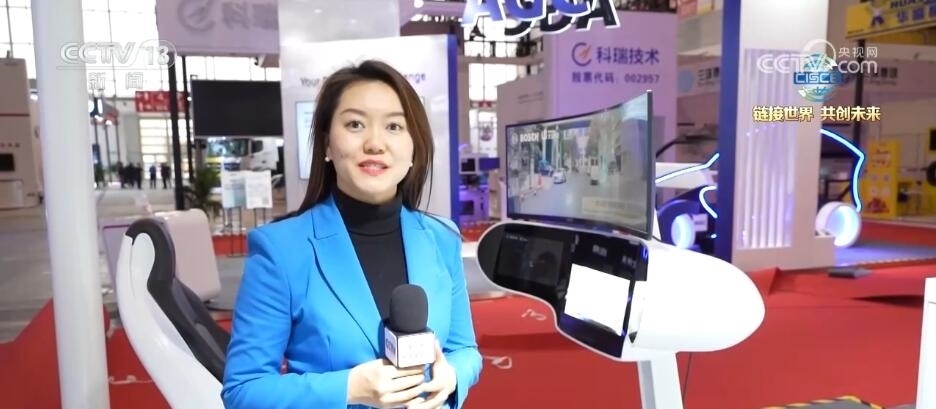 總臺(tái)央視記者 張歆:在本屆鏈博會(huì)上,我們也看到了許多智能專(zhuān)用車(chē)。大家可以看到在我身旁就是一臺(tái)智能航空食品專(zhuān)用車(chē),這臺(tái)重量達(dá)到21噸左右的“大塊頭”裝了許多個(gè)雷達(dá),通過(guò)5G的算法就能夠?qū)崿F(xiàn)無(wú)人駕駛和無(wú)人作業(yè)。