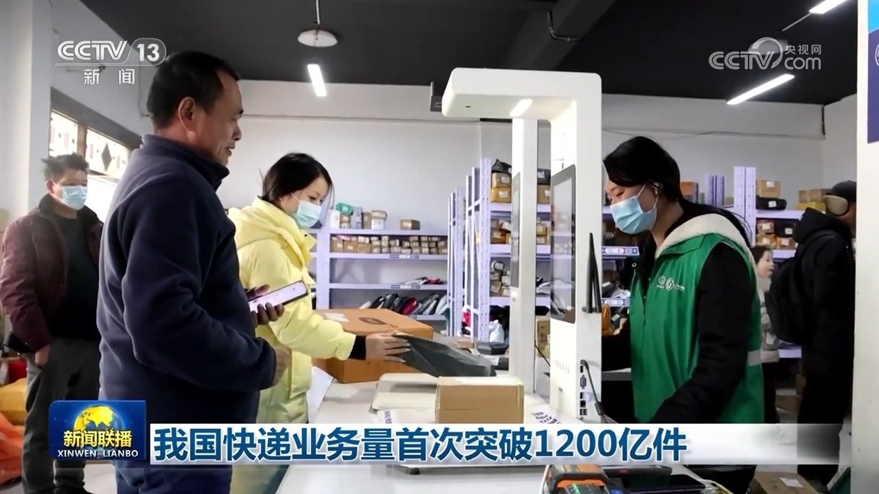 央視網(wǎng)消息(新聞聯(lián)播):國(guó)家郵政局今天(12月5日)發(fā)布數(shù)據(jù),截至12月4日,我國(guó)今年快遞業(yè)務(wù)量突破1200億件,創(chuàng)歷史新高,快遞業(yè)的高速發(fā)展正成為中國(guó)經(jīng)濟(jì)活力的新動(dòng)能。
