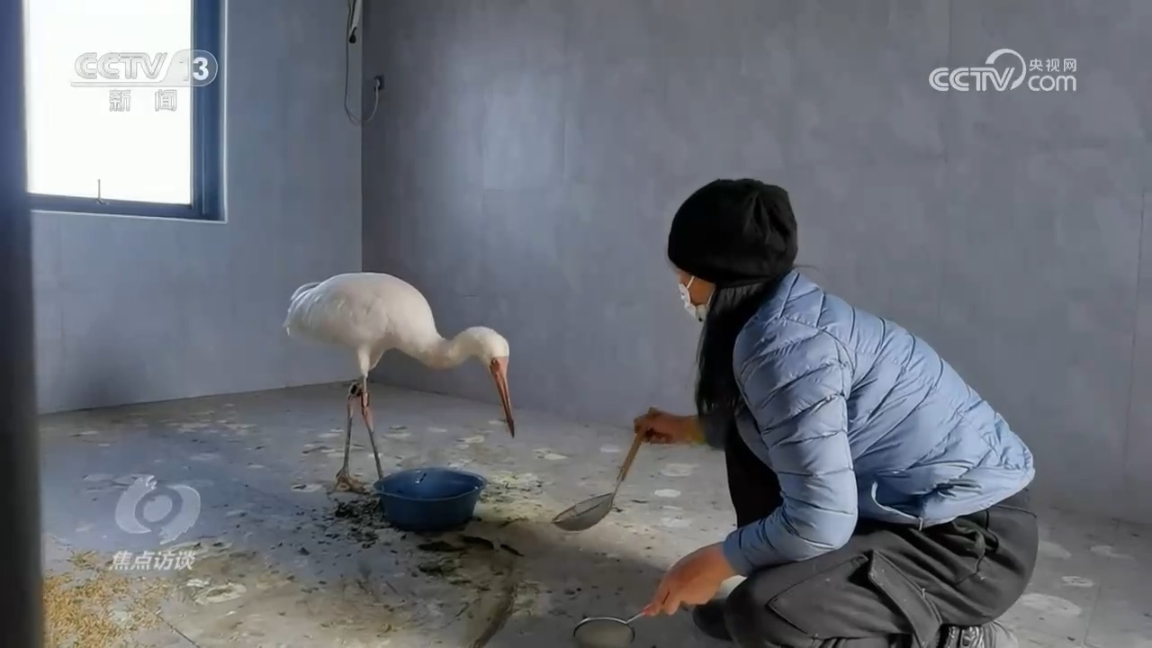 王威:“咱們濕地邊上撈的小魚,每天飼喂,逐漸適應了環(huán)境,體質體況慢慢恢復了?!?/p>