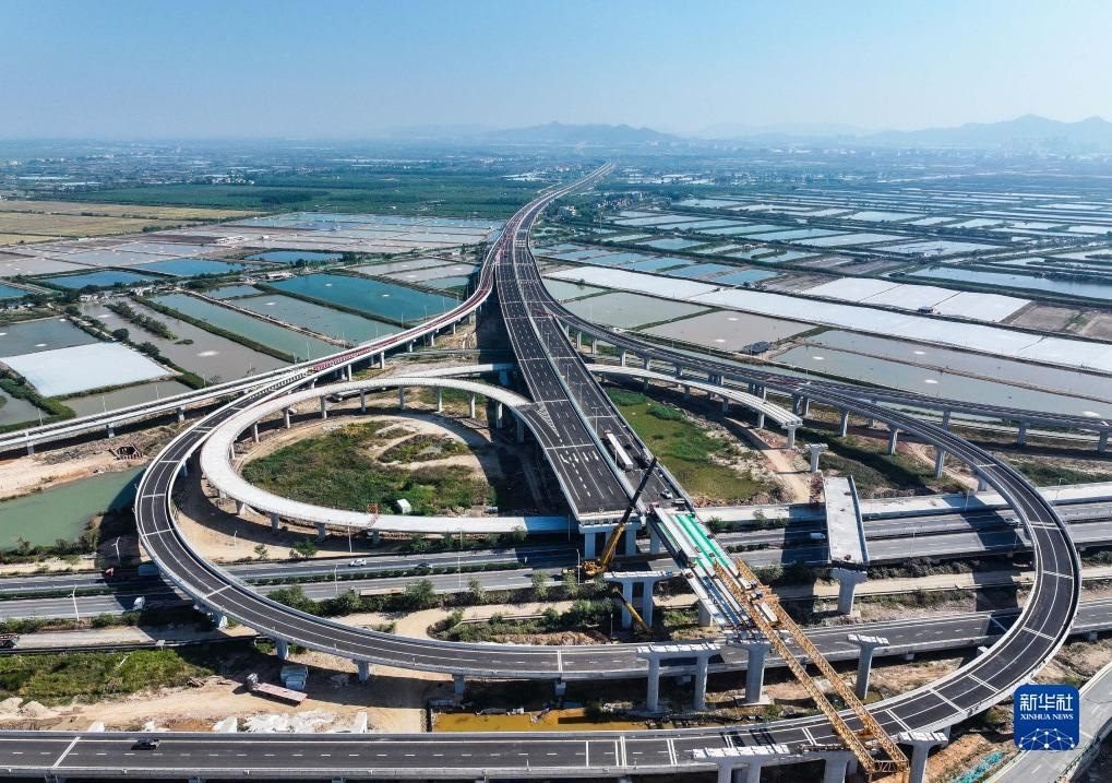 這是廣東鶴港高速高欄港樞紐(2023年12月8日攝,無(wú)人機(jī)照片)。新華社記者 劉大偉 攝