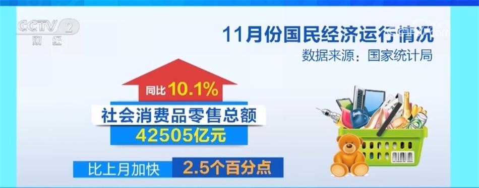 從消費(fèi)看,出行類的商品銷售改善,服務(wù)消費(fèi)潛力繼續(xù)釋放,市場銷售增勢良好。11月份社會(huì)消費(fèi)品零售總額同比增長10.1%,比上月加快2.5個(gè)百分點(diǎn),其中限額以上單位汽車類商品零售額增長14.7%,帶動(dòng)作用明顯。