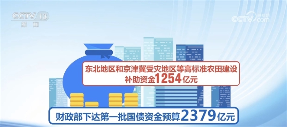 據(jù)介紹,根據(jù)工作機(jī)制確定的第一批2900多個項目,財政部已經(jīng)下達(dá)第一批國債資金預(yù)算2379億元,其中,災(zāi)后恢復(fù)重建和提升防災(zāi)減災(zāi)能力補助資金1075億元、東北地區(qū)和京津冀受災(zāi)地區(qū)等高標(biāo)準(zhǔn)農(nóng)田建設(shè)補助資金1254億元、重點自然災(zāi)害綜合防治體系建設(shè)工程補助資金(氣象基礎(chǔ)設(shè)施項目建設(shè))50億元。