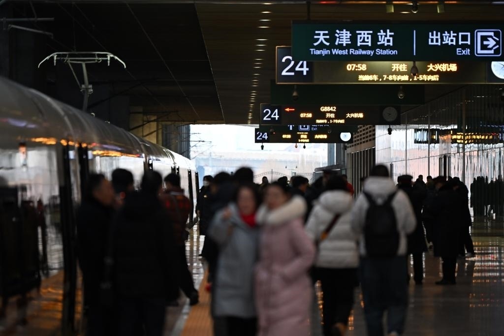 12月18日,G8842次列車(chē)停靠在天津西站站臺(tái)。新華社記者李然攝
