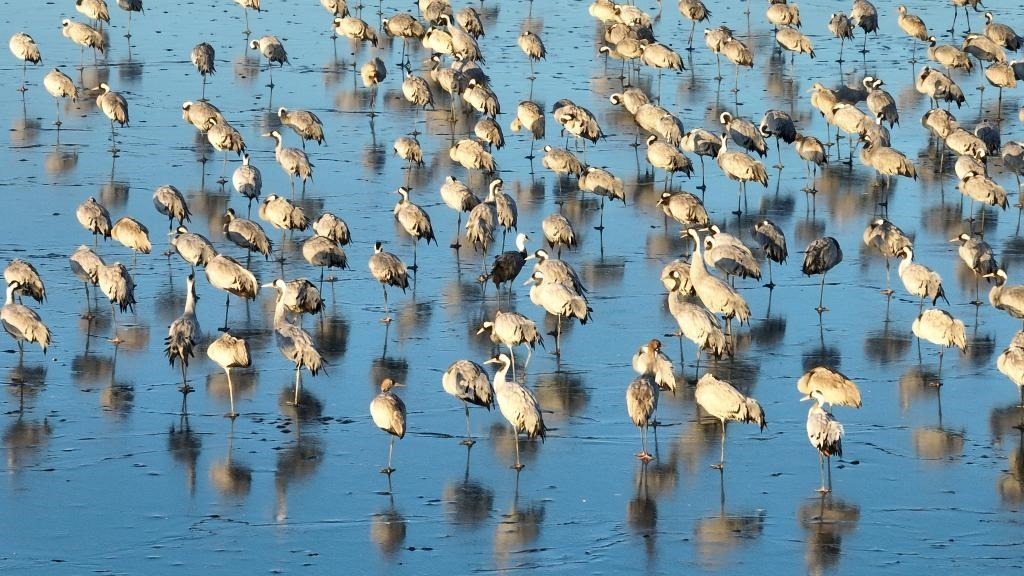 “12月初開始,鶴群陸續(xù)飛臨衡水湖。目前正處于候鳥越冬期,已有60余種、5萬余只候鳥飛到衡水湖越冬?!焙馑?guó)家級(jí)自然保護(hù)區(qū)資源保護(hù)局濕地生態(tài)監(jiān)測(cè)科科長(zhǎng)張余廣說。