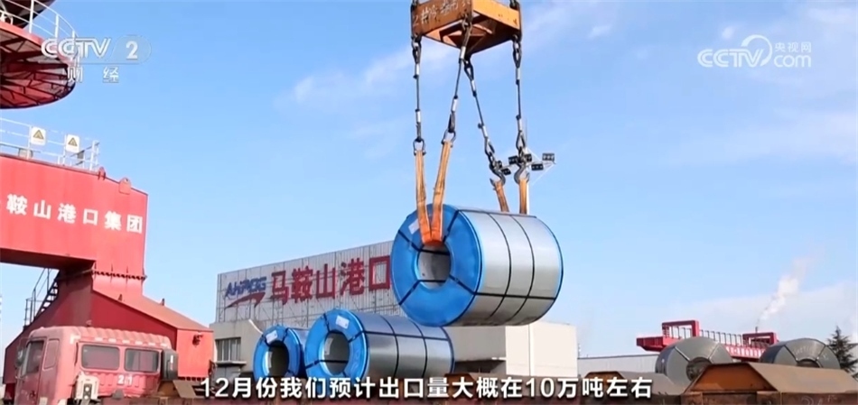 安徽馬鞍山某鋼廠營銷中心合同物流部高級經(jīng)理 朱華龍:目前12月份出口量預(yù)計在10萬噸左右,這個數(shù)據(jù)比前面是增加的,前面月均大概在7.36萬噸。一個是國外市場的需求,另外一個就是我們積極地在拓展國外銷售渠道?;谛б娴目剂?,出口的價格肯定是比內(nèi)銷的價格高的。