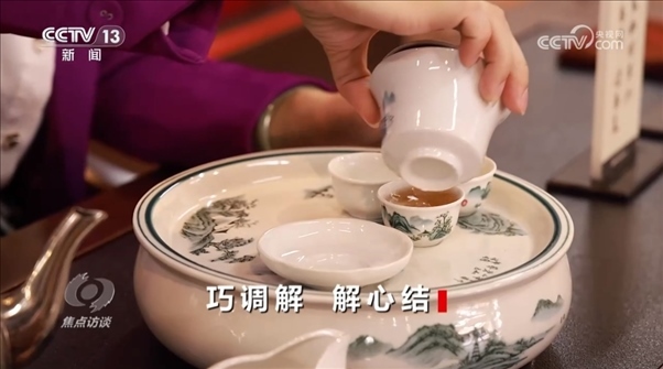 廣東潮州市湘橋區(qū)太平街道開元社區(qū)人民調(diào)解委員會(huì)主任朱桂曼:“我們潮州人有一句俗話,‘寧可三日無食,不可一日無茶’。茶薄人情厚,有閑來喝茶。我是潮州市開元社區(qū)人民調(diào)解委員會(huì)主任朱桂曼,在我們的居民議事廳,天天有居民來喝茶。慢慢品一杯清茶,很多矛盾糾紛就慢慢化解了?!?/p>