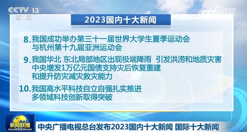2023國內(nèi)十大新聞分別是: