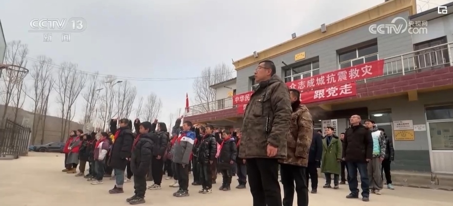 新年第一天,在積石山縣劉集鄉(xiāng)高李村,來(lái)自高李保安族春蕾小學(xué)的53名師生和高李村集中安置點(diǎn)的部分村民、志愿者也共同舉行了升旗儀式。孩子們對(duì)著國(guó)旗敬少先隊(duì)隊(duì)禮,村民們則注視著國(guó)旗行注目禮,表達(dá)著對(duì)祖國(guó)的敬意和深深的愛(ài)意。