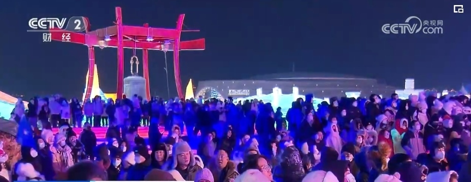 總臺央視記者 郭晉華:在這個(gè)冰雕玉砌的世界,一簇簇焰火映襯著流光溢彩的冰雕建筑群,帶著人們對新年的祈盼噴薄而出。哈爾濱冰雪大世界,雖然現(xiàn)在室外氣溫達(dá)到了零下20多度,但是大家冰雪跨年的熱情卻是點(diǎn)燃了全場,來自全國各地的游客在這場狂歡中一起迎接新年的到來。