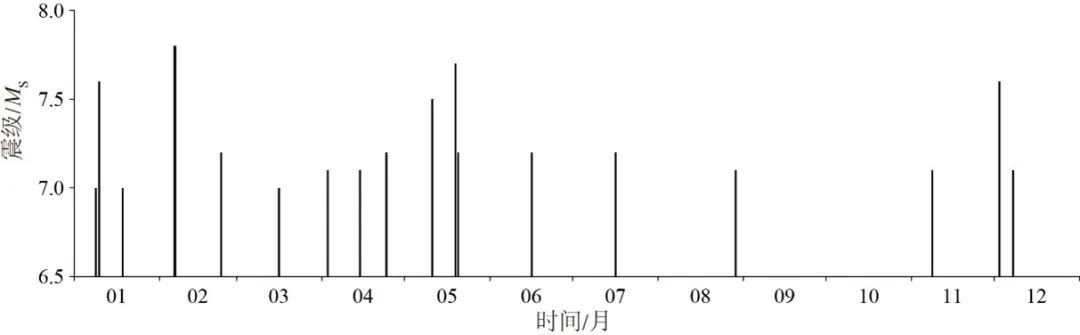 2023年全球7級以上地震震級時序圖