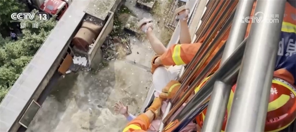 與此同時(shí),消防部門來到樓上,在用工具強(qiáng)行破門之后,快速來到陽臺,最終在多方力量的配合下,成功將被困的小女孩兒救下。