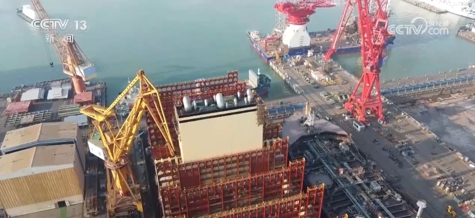 一輛輛各式各樣的自行車平穩(wěn)穿梭在安全區(qū),車上的工友有事兒就會互相召喚,拿出圖紙解決問題,互通有無。而在職工和船東餐廳里,一張張餐桌上分區(qū)標記了各個業(yè)主單位。吃完飯撤掉餐具,大家就開始“頭腦風暴”,現(xiàn)場辦公。