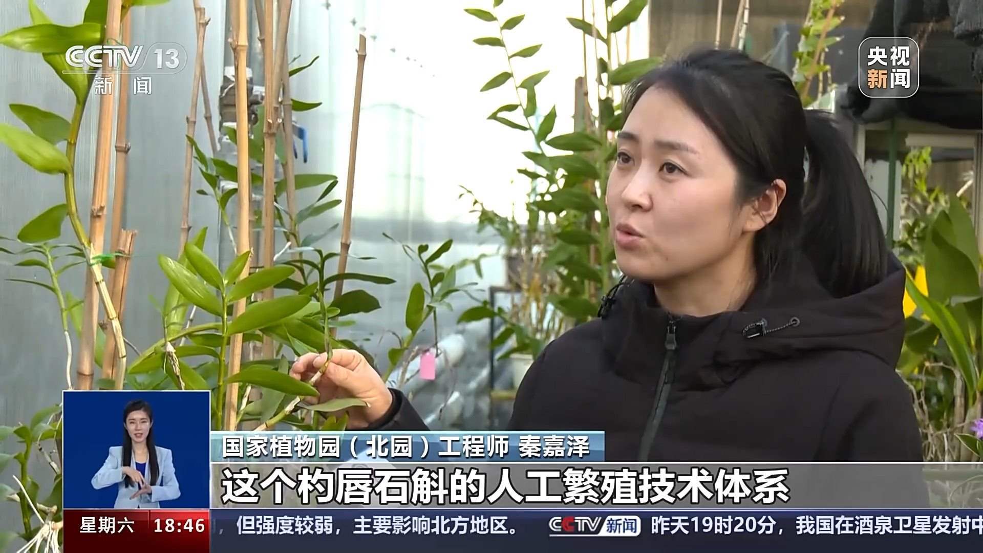 國家植物園(北園)工程師 秦嘉澤它在野外是屬于瀕危的一個狀態(tài),當下,我們已經(jīng)成功建立了這個杓唇石斛的人工繁殖技術體系,然后也成功繁育出了1000多株幼苗。