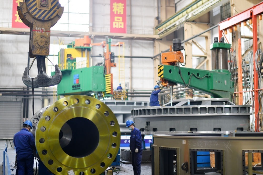 工人在哈電集團哈爾濱鍋爐廠有限責(zé)任公司生產(chǎn)車間作業(yè)(2023年4月12日攝)。新華社記者 王建威 攝